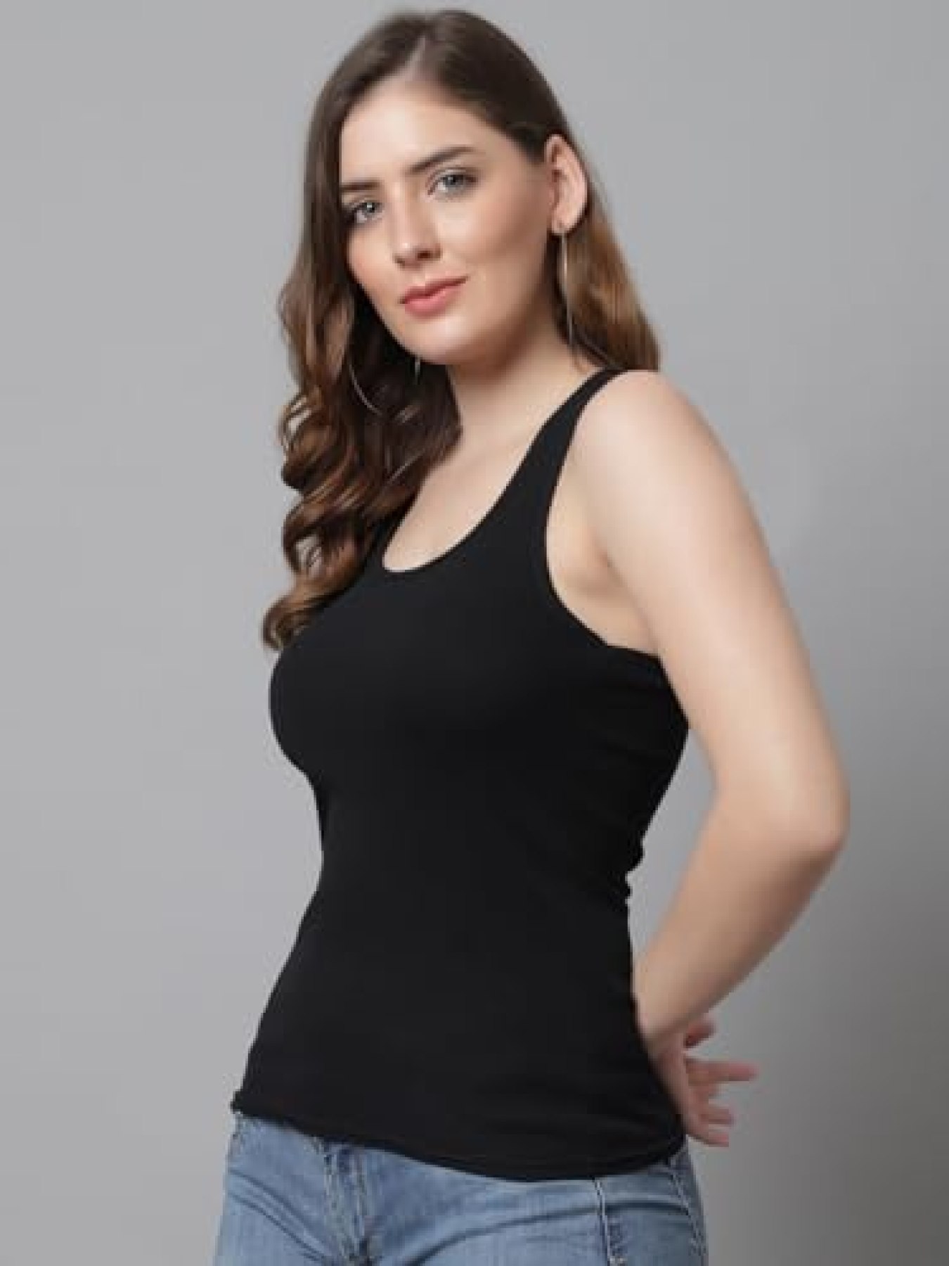 Women comfortable housiey cotton Plain premium Lightweight Soft Cotton Sandow Camis Tops for Women and Nightwear Everyday Use black